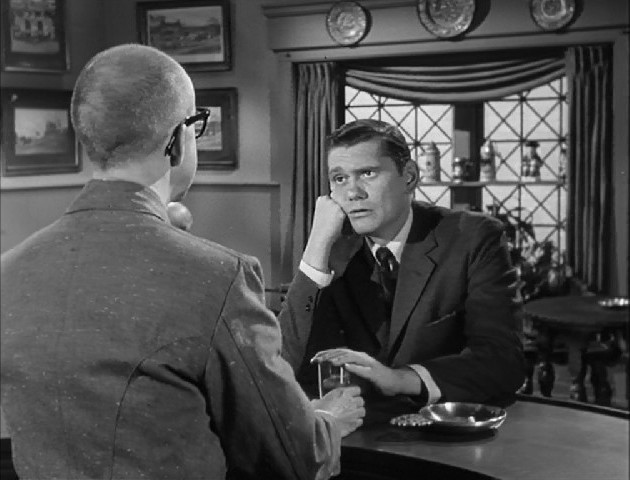 Darrin’s attempt to seek advice about his “predicament” is one of the funniest sequences in the episode. His friend Dave is having an entirely different conversation, the doctor cheerfully tells him, “Now that you’ve had your honeymoon, take a vacation” and the bartender tops it all with, “You should see my wife.” It’s a perfect little montage of male camaraderie, where no one actually listens to anyone else.