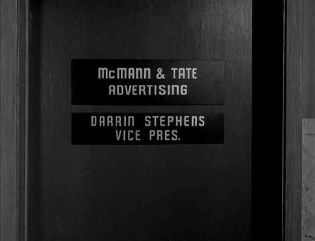 There’s also a funny little production oddity: the sign on Darrin’s office door identifies him as Vice President at McMann & Tate. In every future episode, he’s an Account Executive. Pilot episodes often have interesting details like that. The interior of the Brady house was completely different in the pilot than in all other episodes of THE BRADY BUNCH.
