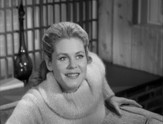 Elizabeth Montgomery looks radiant in this scene, with a hairstyle I don’t recall seeing in any other episode and wearing a sweater that feels like it might have come straight from her own closet.