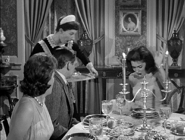 The best part of the episode, though, is Samantha’s quiet, controlled revenge. When she’s finally had enough, she uses her witchcraft to turn the tables on Sheila: food stuck in her teeth, her elbow in the soup, the maid dropping a tray of food in her lap.